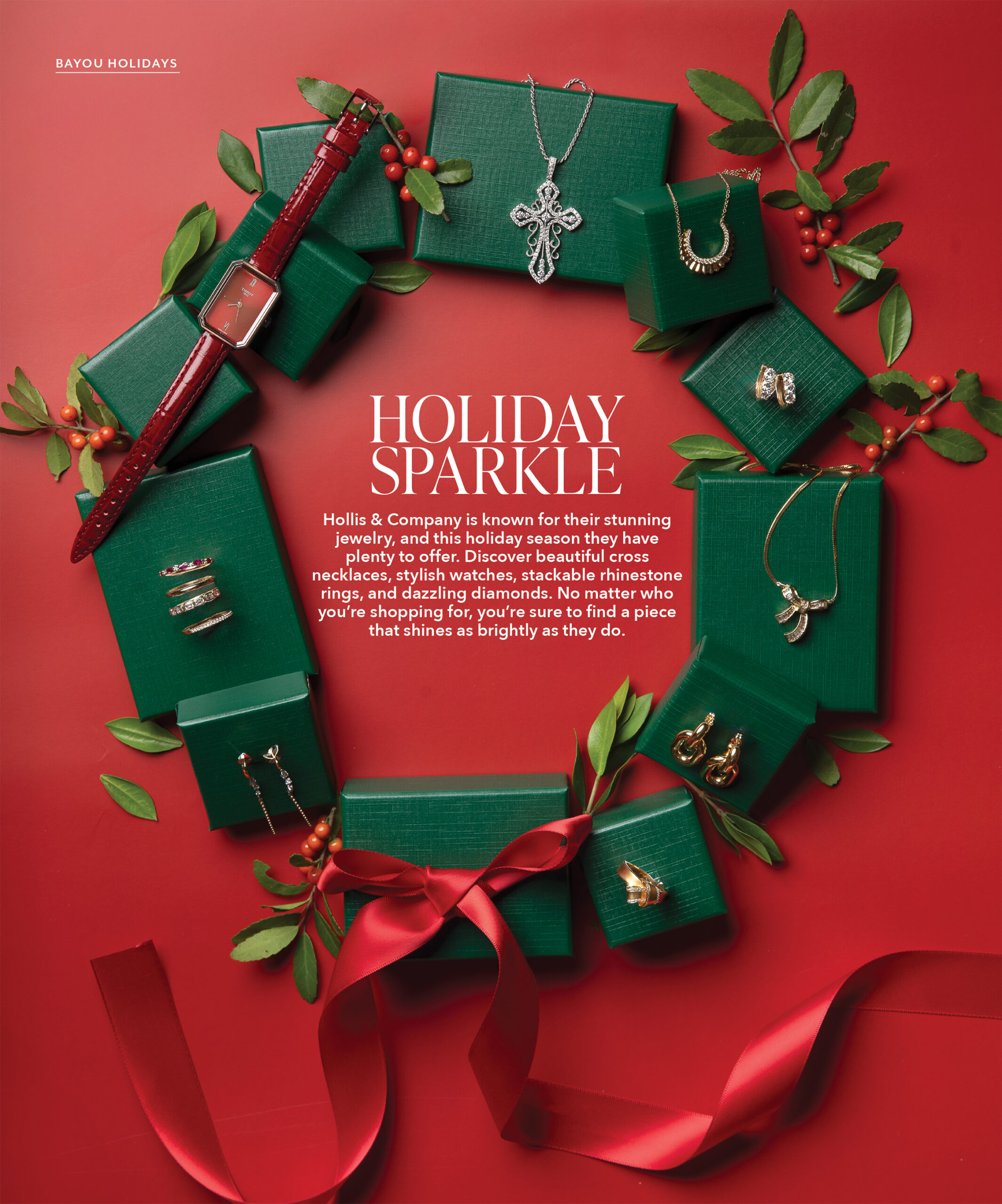 JEWELRY FROM HOLLIS & COMPANYSTYLED BY KATE ASHLEYPHOTO BY KELLY MOORE CLARK Hollis & Company is known for their stunning jewelry, and this holiday season they have plenty to offer. Discover beautiful cross necklaces, stylish watches, stackable rhinestone rings, and dazzling diamonds. No matt...