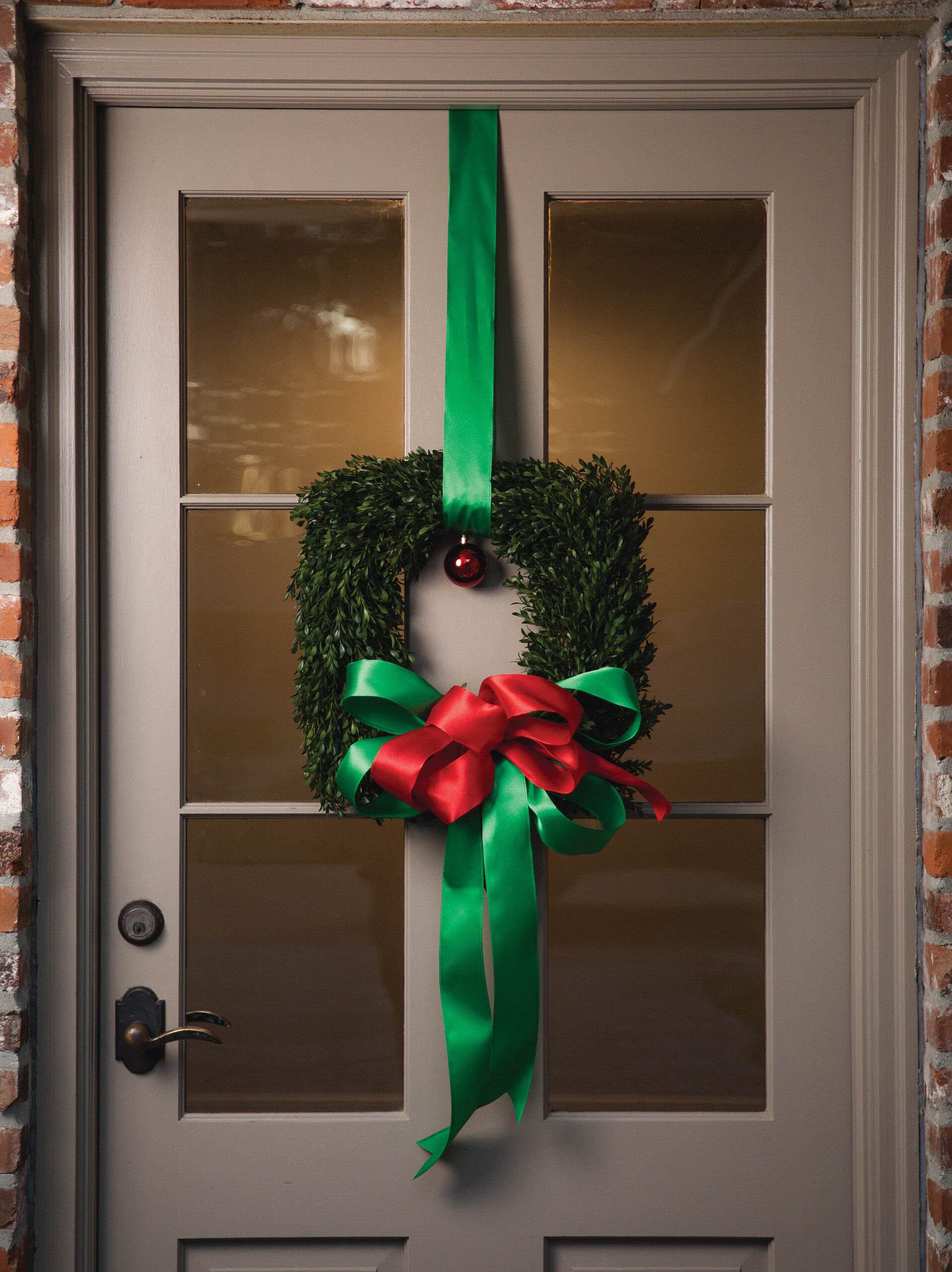 Styled by Maré Brennan | Photography by Kelly Moore Clark A square faux boxwood wreath is a great foundation for any number of Christmas looks for your door. We found this adorable (and versatile) wreath at Palette House. It looks cute just hung with ribbon, but you can add cuttings from your yard ...
