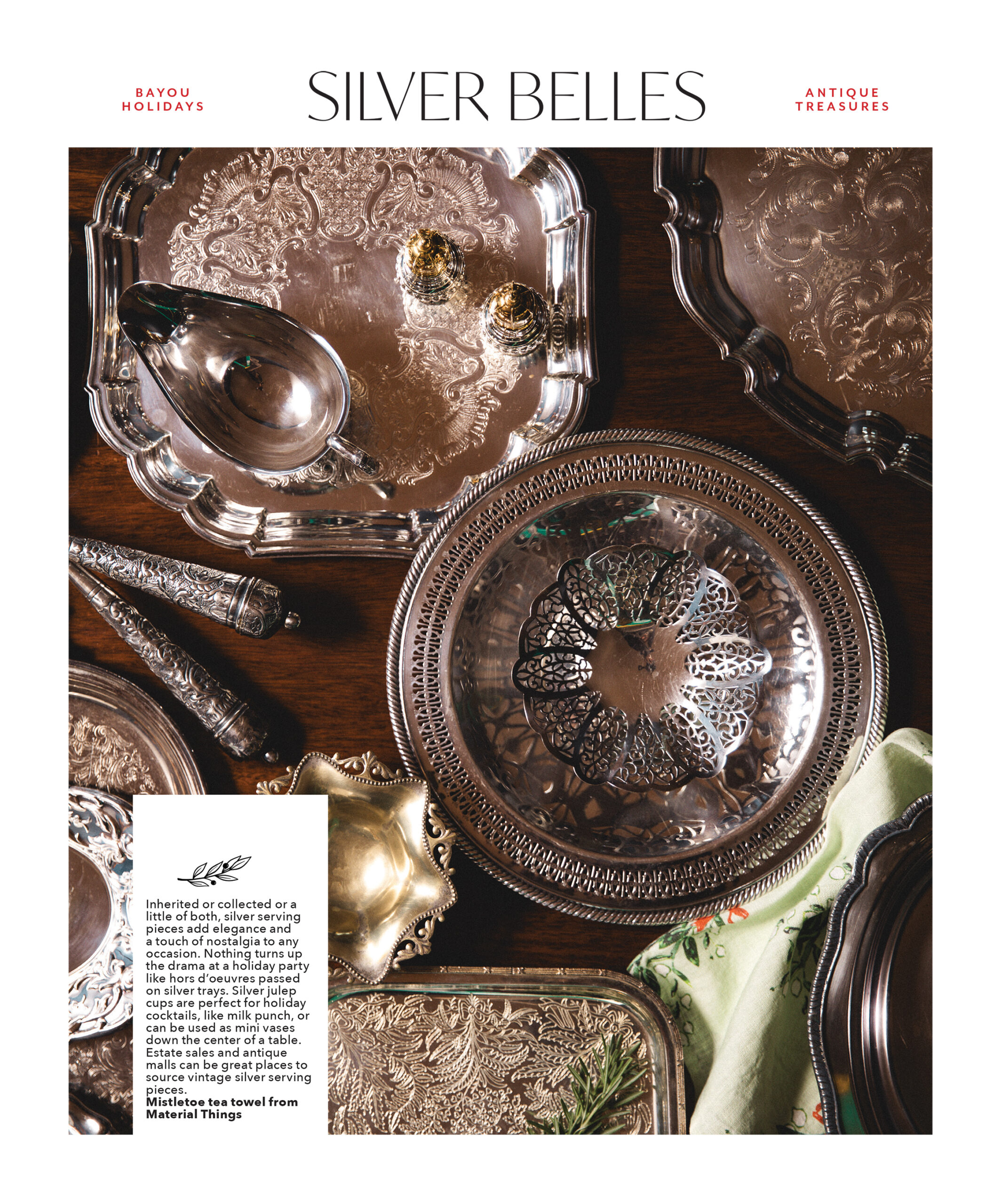 Styled by Maré Brennan | Photography by Kelly Moore Clark Inherited or collected or a little of both, silver serving pieces add elegance and a touch of nostalgia to any occasion. Nothing turns up the drama at a holiday party like hors d’oeuvres passed on silver trays. Silver julep cups are perfect ...