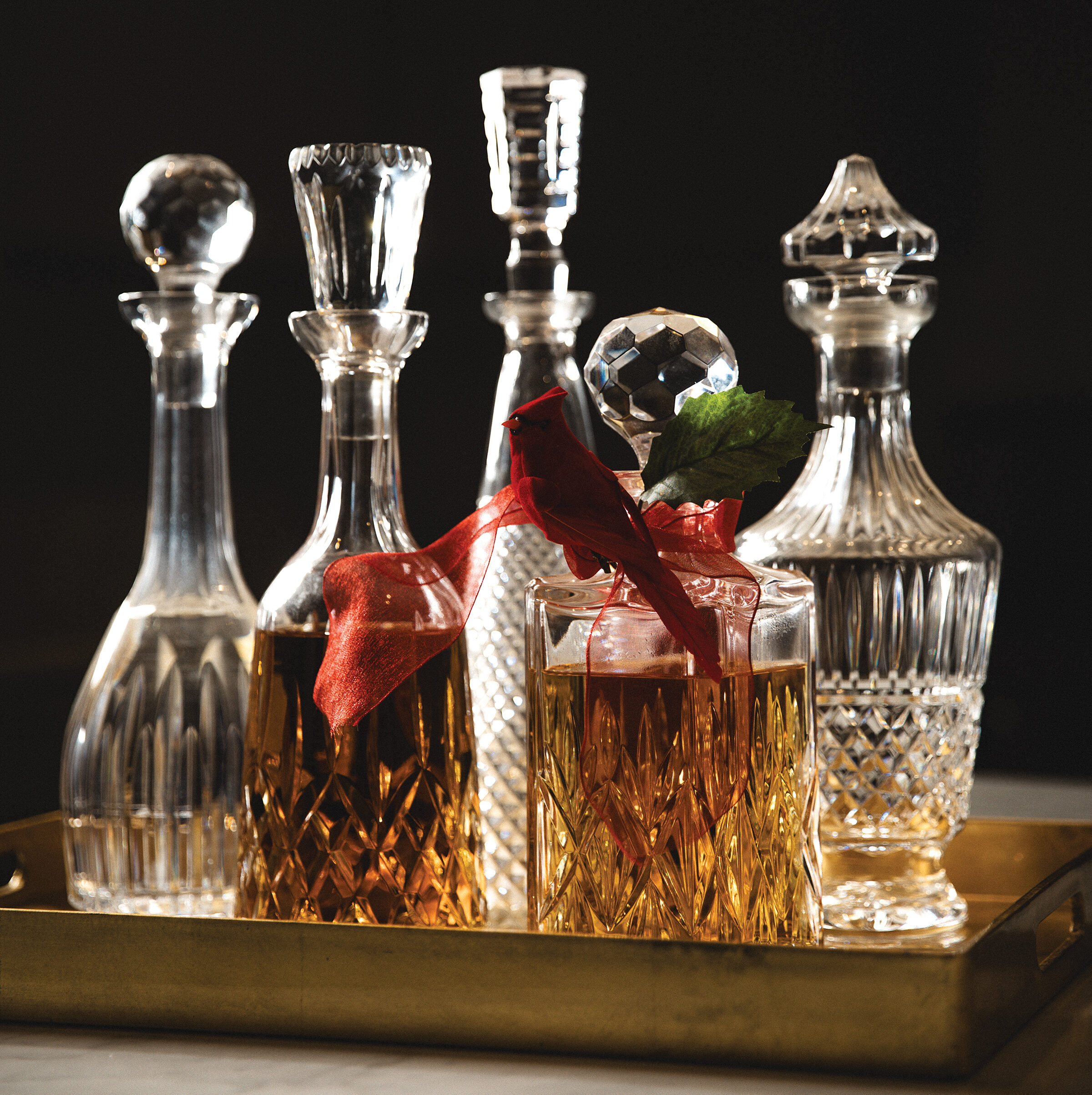 Styled by Maré Brennan | Photography by Kelly Moore Clark Nothing says holiday entertaining like your favorite spirits displayed in a collection of crystal decanters. Waterford Crystal decanters are displayed with an antique cut crystal decanter from the late 1800s. Waterford Crystal is available t...