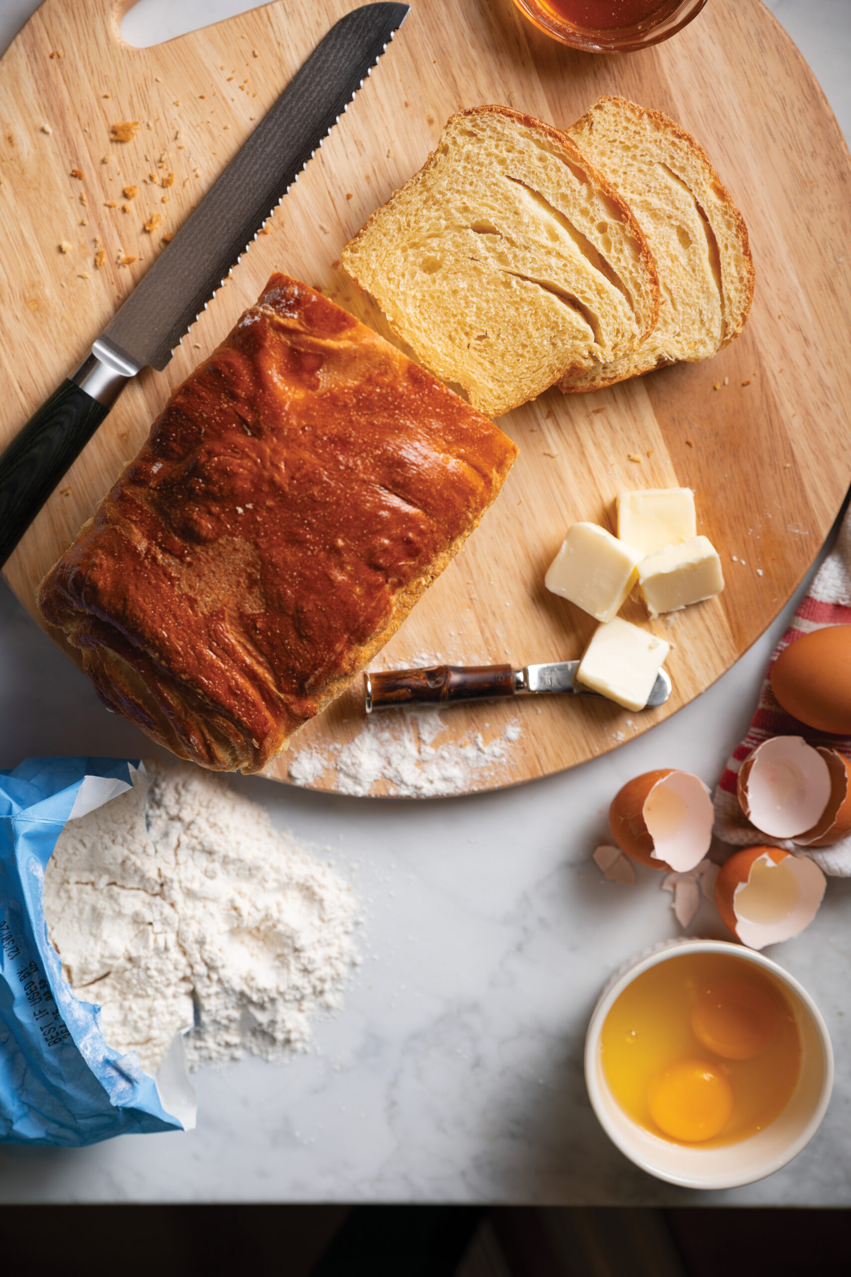 This recipe for a light, buttery brioche bread with a hint of sweet honey could not be easier! You’ll never buy store bought bread again. Serves 10.
